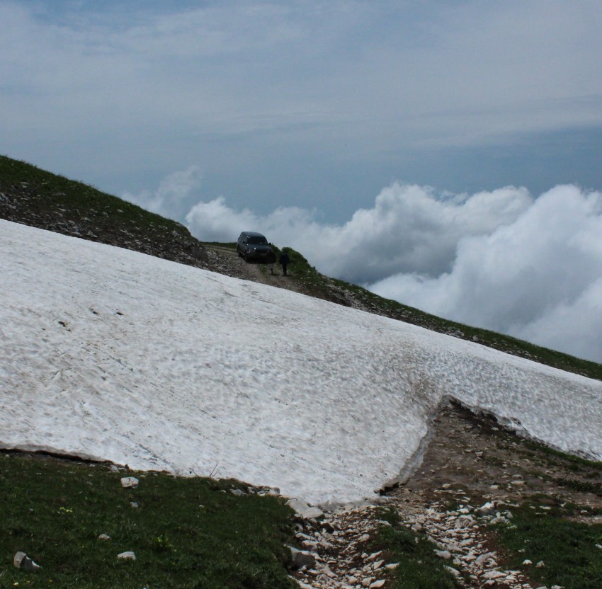 Снега в горах еще много для машин…