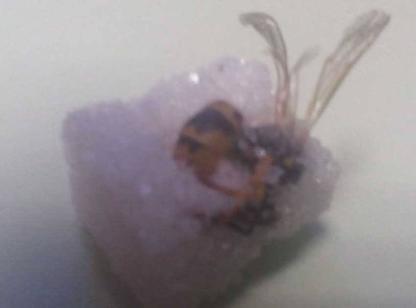 Обычно ценятся мушки в янтаре, а тут оса(или пчела) в сахаре. Вот такой сюрприз обнаружили сегодня при готовке кофе.