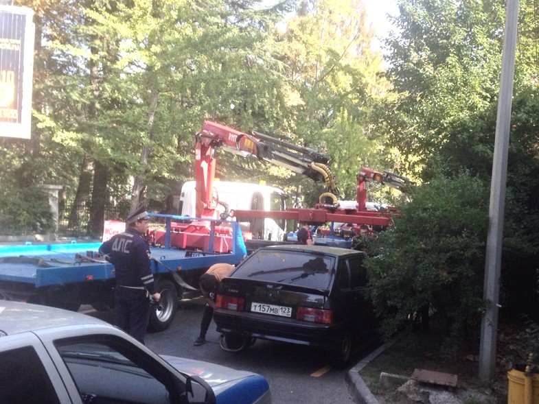 Оперативненько, двумя эвакуаторами. Через пять минут ни милиции, ни машин, ни «похитителей»))