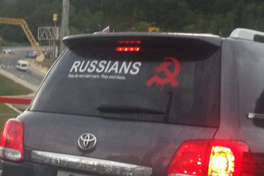 Пробка на мамайке… Порадовала надпись на крузаке Russians. They don't start wars. They end them. Мега респектище!:)