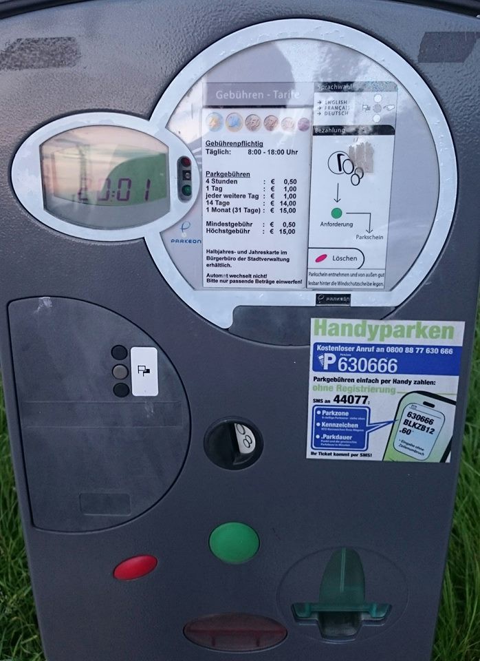 Паркомат на вокзале немецкого города — районного центра с населением около 40 тысяч человек.