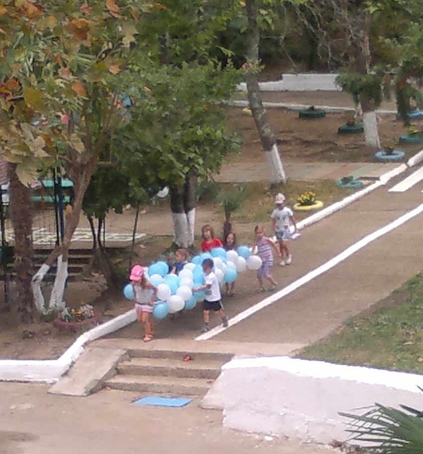 Вчера открыли пристройку к 28 садику на Бытхе, а сегодня детям счастье: гирлянду шаров на растерзание отдали