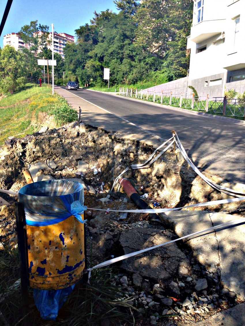 Съезд с Макаренко на пластунку, раскопали, трубы заменили, а сделать как было не судьба видно