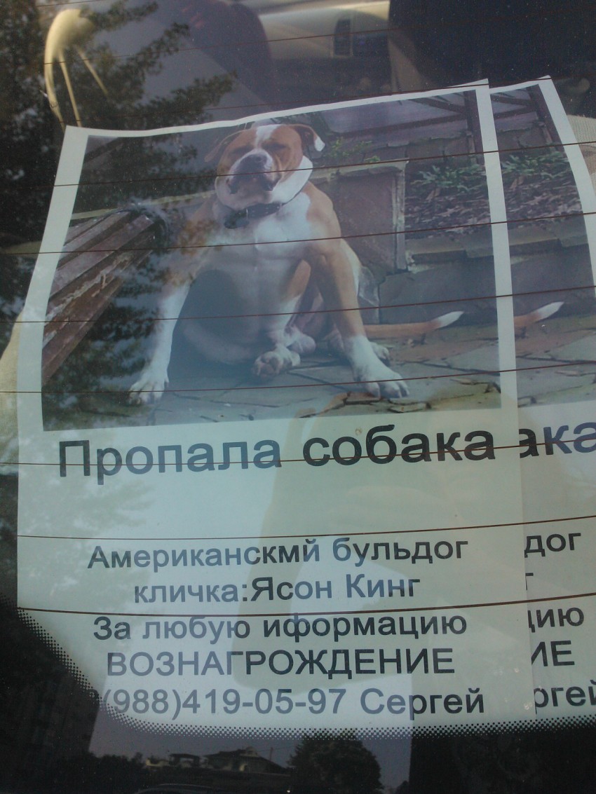Сегодня увидела объявление в автомобиле, сказали собака потерялась на Ахуне, хозяин очень волнуется.