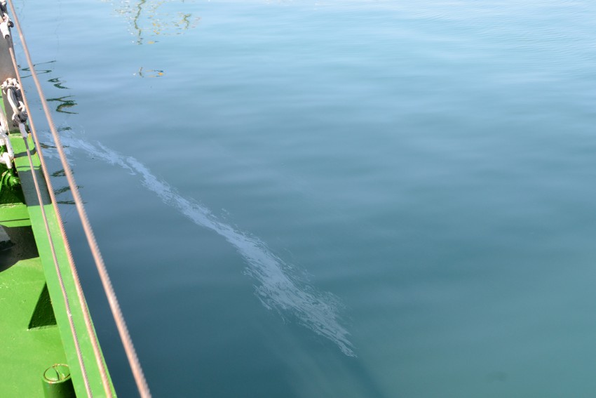 Нефтяное пятно под одним из парусников