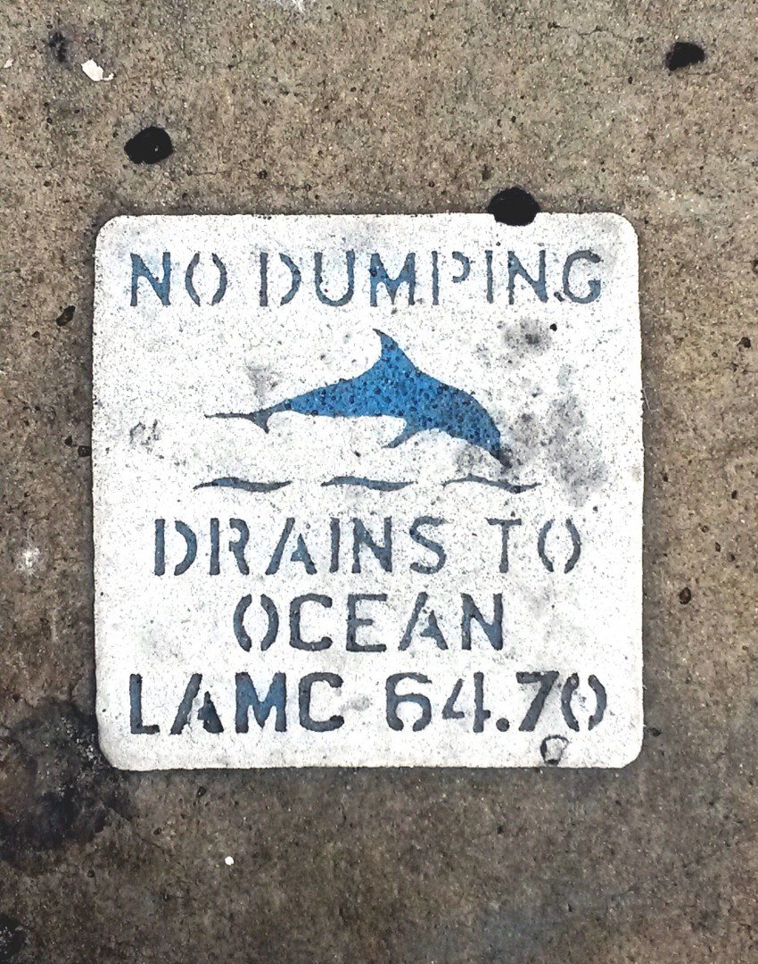 Los Angeles / картинки рядом с водосточными сливами: Не сливать/не бросать мусор. Стекает в океан.