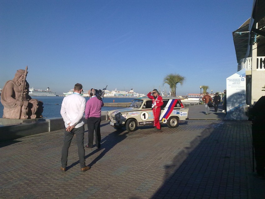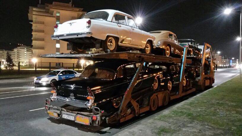 Трейлер с машинами, участвовавшими в открытии олимпиады в Сочи, покидает олимпийский город