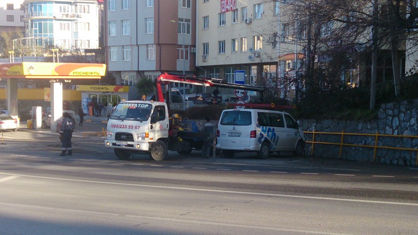 Виноградная.Парковочный пятачок на заправке «Роснефть» влет вывезли, олимпийский автомобиль в придачу.