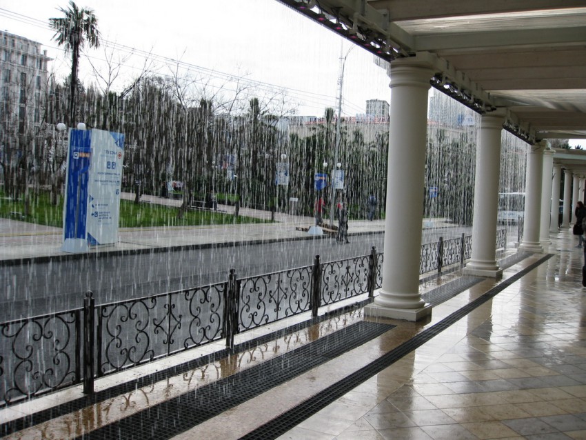 Забавная водяная завеса в новом торговом комплексе напротив вокзала.
