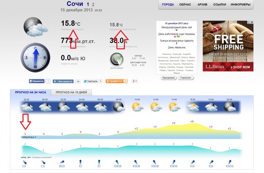 Смотрю на сайт реальной погоды.