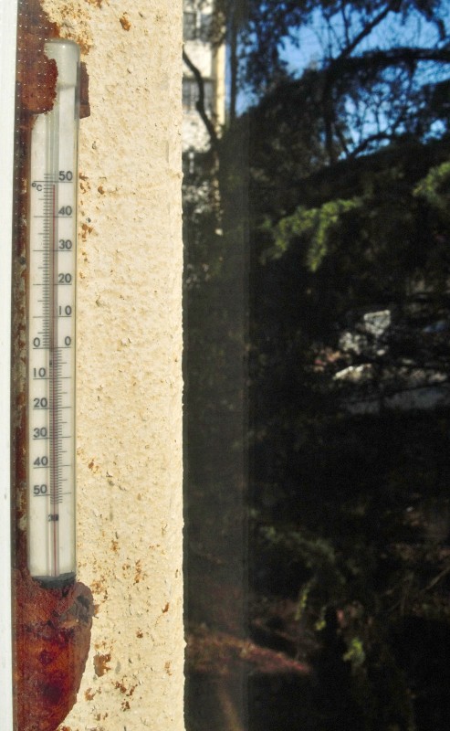 Монтажная пена если не загорится, то хотя бы закоптится. Это реальная температура за окном сегодня в 11:10 под прямыми лучами солнца (летом и больше показывает, а вчера почему-то меньше