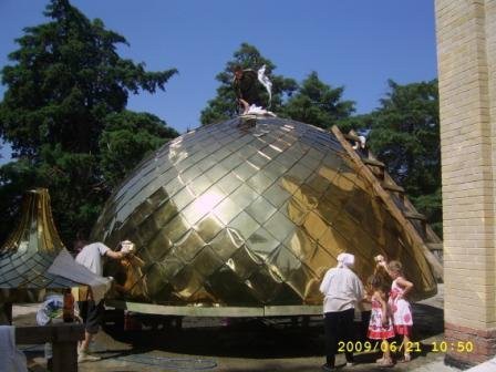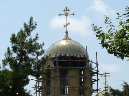 И общее фото в черкесках на лесах у купола