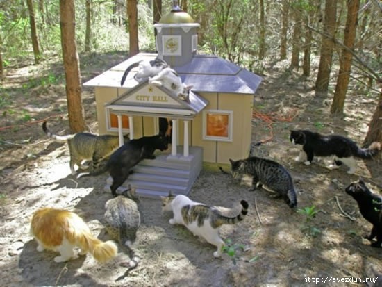 В моём дворе тоже не меньше 10 кошек живут уличных, и пушистые, и рыжие, и белые, сиамские… каких только нет.