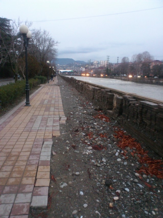 полоса с песчанно гравийной смесью — для пешеходов, т.к. зима, гололёд.