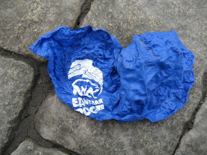Шарики с символикой КПРФ кстати там тоже видел, но их было несравнимо меньше, были они намного красивее (красные прозрачные, как на советском Первомае) и относились к ним куда бережнее — валяющего и лопнутого ни одного не видел.