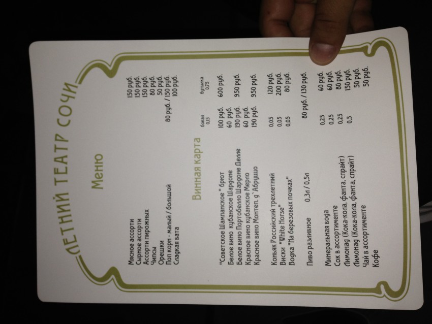Про цены на напитки, официантов и кабаре????????????!!!