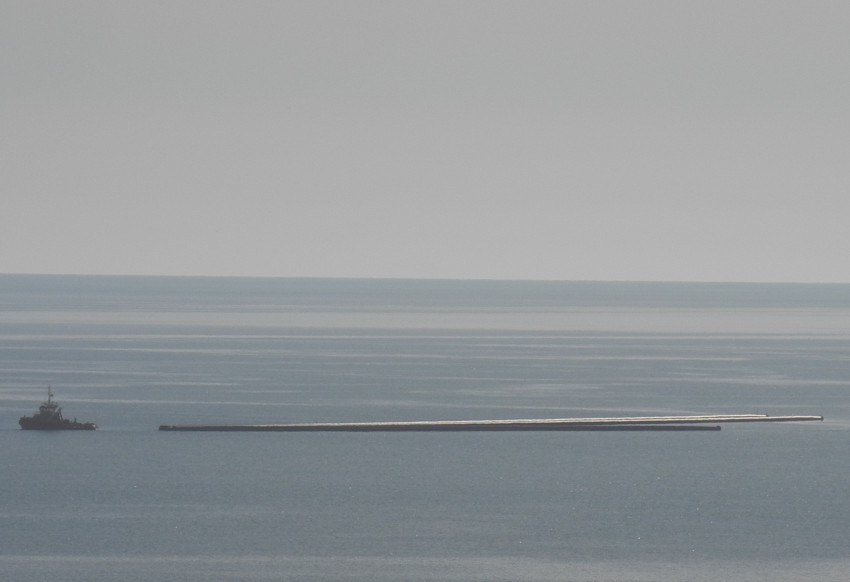 Эту трубу из четырех компонентов приперли в марте из Бельгии… Она будет монтироваться в водовыпуск на Мзымте… Но у нас как всегда — горе-строители не готовы к монтажу, вот и болтается труба на 407 якорной стоянке… до июля будет еще стоять…