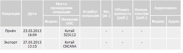 По состоянию на 26.04.2013 г. отправление «Посылки» соответствующими структурными подразделениями ФГУП «Почта России» НЕ зарегистрировано на территории Российской Федерации.