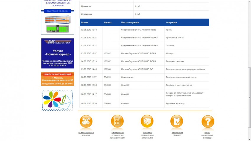 По состоянию на 26.04.2013 г. отправление «Посылки» мне НЕ вручено.