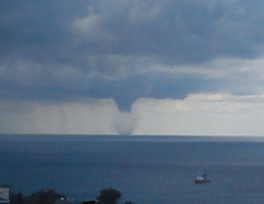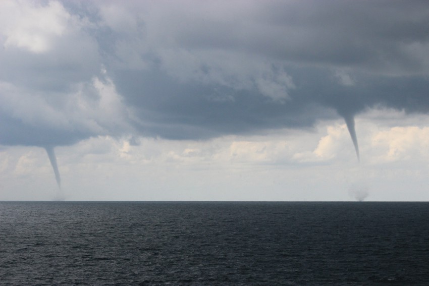 Смерч забирает воду из моря.