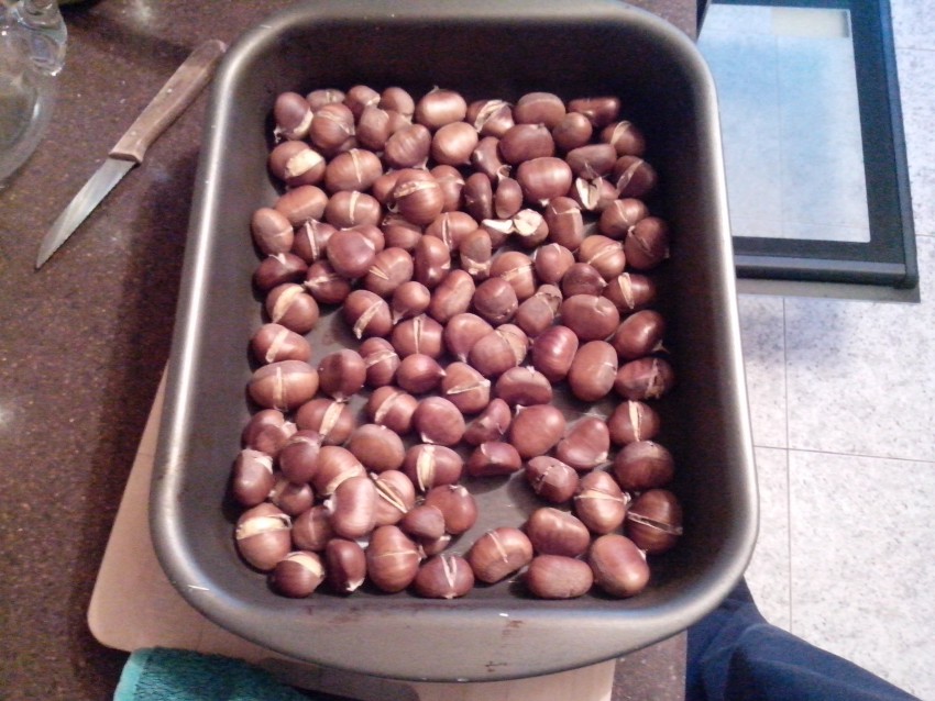 и мешая жарить. до светло-коричневого цвета или первого взрыва каштанчега ))) ( что тоже иногда бывает) ну или в аэрогриле.