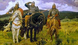 Илья Муромец — слева! Добрыня Никитич — справа! И паять Олег Поповичей — в центре!))))