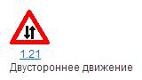 Этот знак относится к группе знаков особых предписаний, он должен стоять непосредственно в конце дороги с односторонним движением. А 1.21 как раз за 50-100 метров перед таким знаком 5.6. Ещё раз повторю, 1.21 это предупреждающий знак, в населенном пунтке он устанавливается за 50-100 метров до участка дороги с двухсторонним движением. Он предупреждает, что скоро кончится односторонние движение если говорить простым языком.