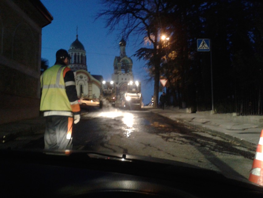 На вопрос почему вы делаете дорогу с утра ,- Так начальство сказало! То что они ниже дорогу по ул Пирогова делать не будут это 100%, по Виноградной едут машины с номерами скс и екх на Бочарку. На остальных жителей им наплевать. И когда машины не выдержали и поехали, рабочие сказали -Вы на Олимпиаде след оставили!