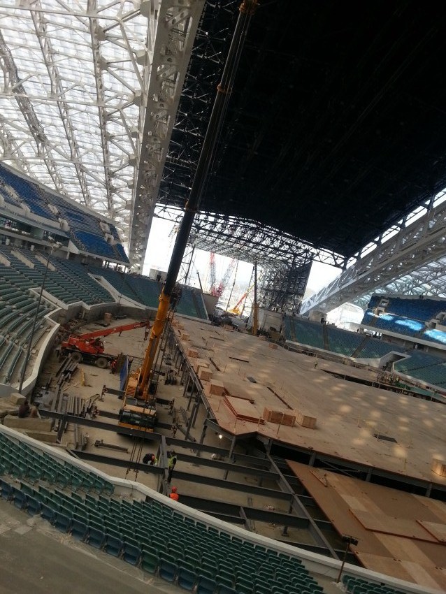 я тоже недавно туда поехала (там поселок рядом, в парикмахерскую надо было). Жууууть… там все «сырое» вообще. Кругом грязь, огромные лужи, затянутые сетками-рабицами огороды местных жителей, открывающие хаосно-развалюшные придомовые территории тех, кого не успели снести (такой бардак там во дворах, жуть просто). И рядом эти гигантские стадионы, страшные на вид (они-то, может, и красивые, но из-за того, что недостроенные, страшно смотрится, как-будто ты попала в фильм Трансформеры и парочка из пришельцев вот как раз и приземлилась на огороды бухтян). Когда успеют достроить, когда успеют облагоустроить и озеленить, вообще не поддается моему воображение, честно говоря! И если успеют- это будет просто сказкой (а они успеют, уверена), сказкой в том плане, что «на каких соплях это тогда должно все держаться»