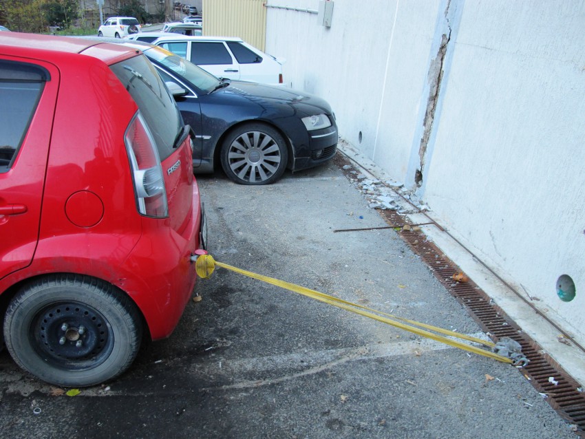 А, блин, забыла от решётки отстегнуться.