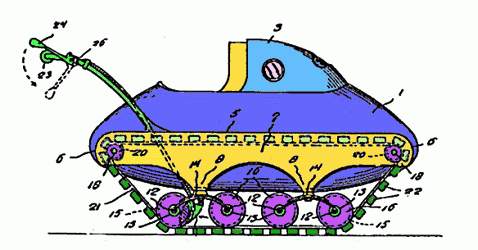 Первое место в коллекции маразма Теда Ванклифа мы единогласно присуждаем детской коляске на гусеничном ходу ATS (All Terrain Stroller), запатентованной в далёком 1947 году.