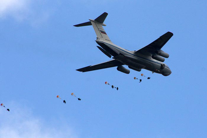 Вообще то открыть боковую дверь у ИЛ-76 практически невозможно из-за высокого давления которую создаёт высота и высокая скорость самолёта, или вы насмотрелись блокбастеров?