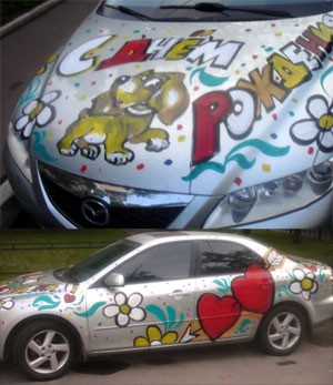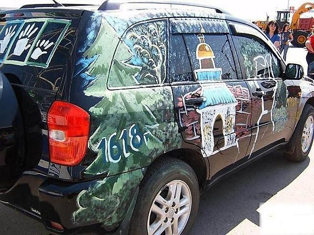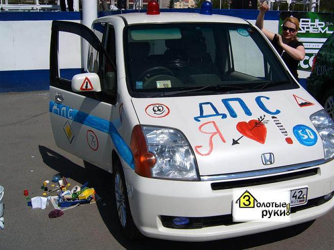 ))))))) ну да… а то увековечить придется ))))… а как ГАИ?.. думаю не все можно и не 100% закрашивать… чтоб ездить какое то время так… думаю с надписями ДПС и полоски не оценят… ну или если перекрасить больше положенного % цвет… не?