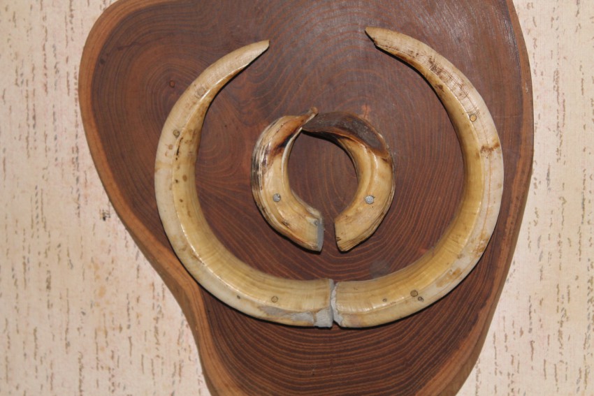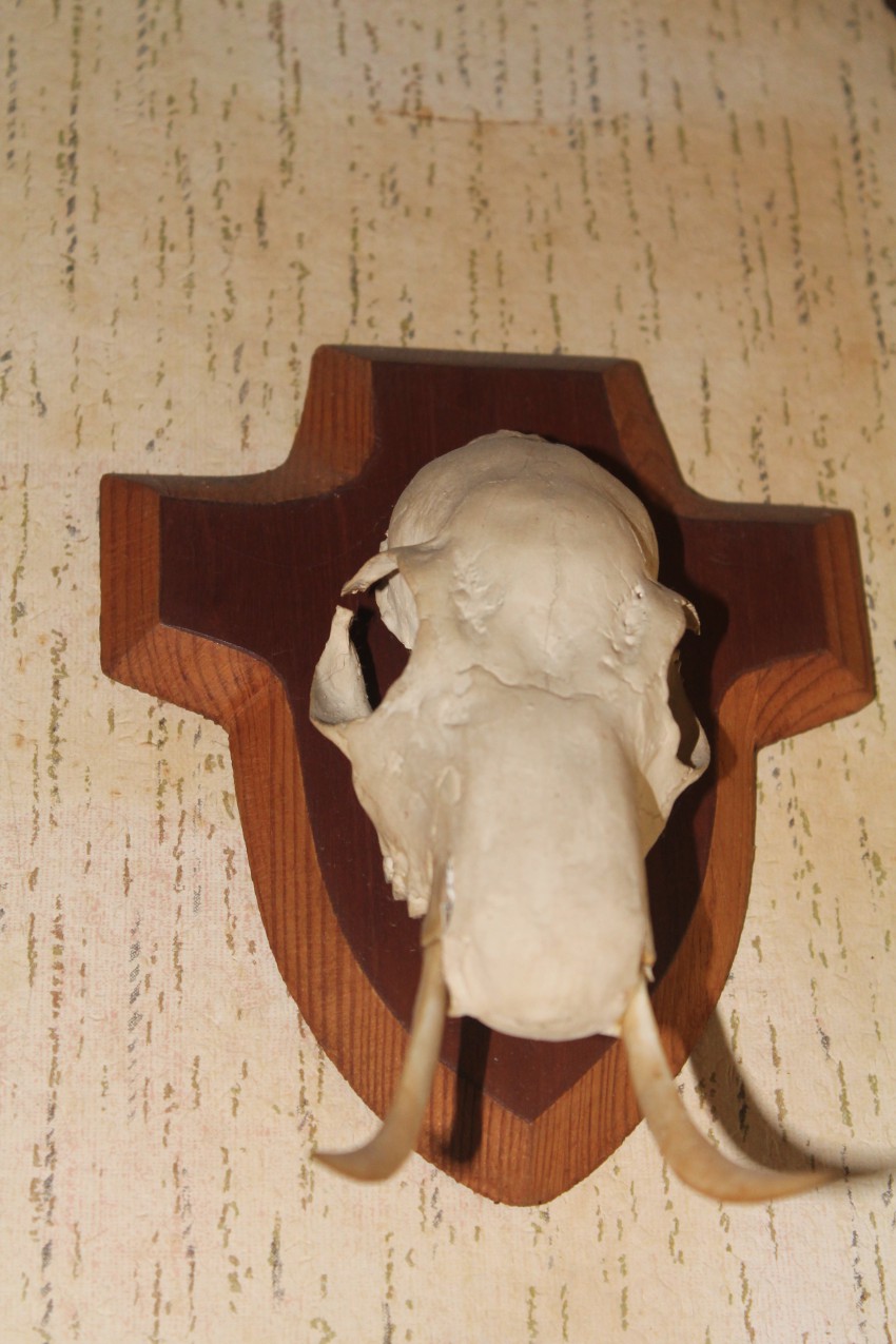 для слоненка уж слишком маленький череп да и рождаются без бивней.Тут у охотников надо спрашивать.даже дикого кабана и то округлые клыки, а эти более плоские и зубы только коренные а впереди нет и намека