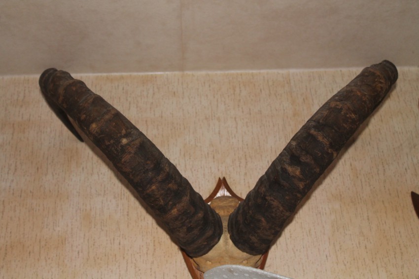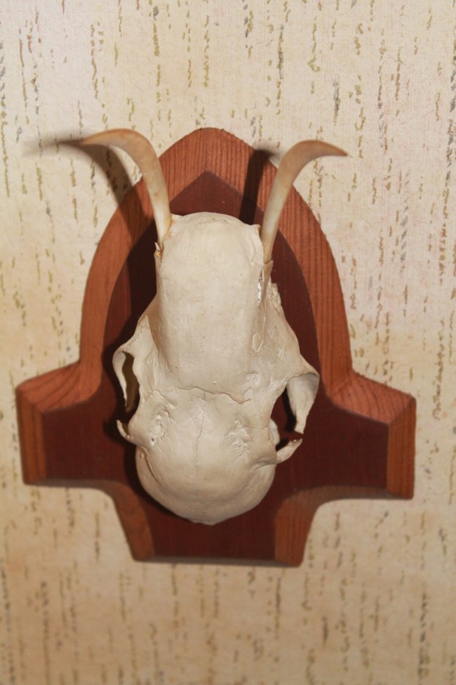 около 15 см нижней челюсти нет а на верхней есть коренные маленькие зубки.Снизу есть со спичичную головку отверстия.У меня нет в профиль это же не мой череп:))это в гостях делала фото