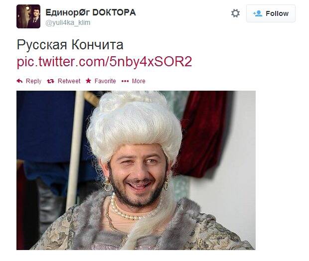 Кстати, сегодня списался с другом детства, который проживает в пригороде Вены. Так Александр, написал, что народ радуется победе Кончиты. ЛГБТ прям от на г*вно от радости исходит, со своими флажками гуляют. А вот истинных арийцев что-то не видать в Вене, никто за чистоту расы не борется и содомитов не гоняет.