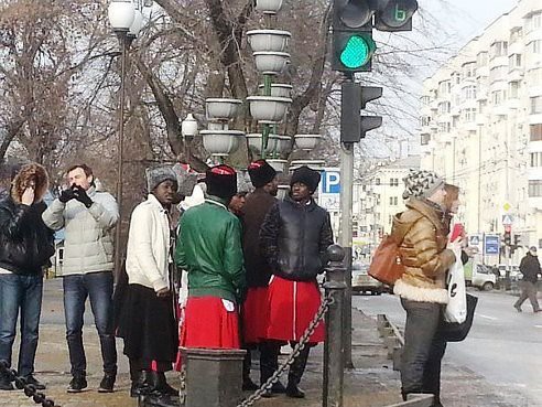 Ну что вы привязались к людям? Это группа «Маруся». Они в сценических костюмах. Кстати, замечательно и вдохновенно исполняют казачьи (и не только) песни.