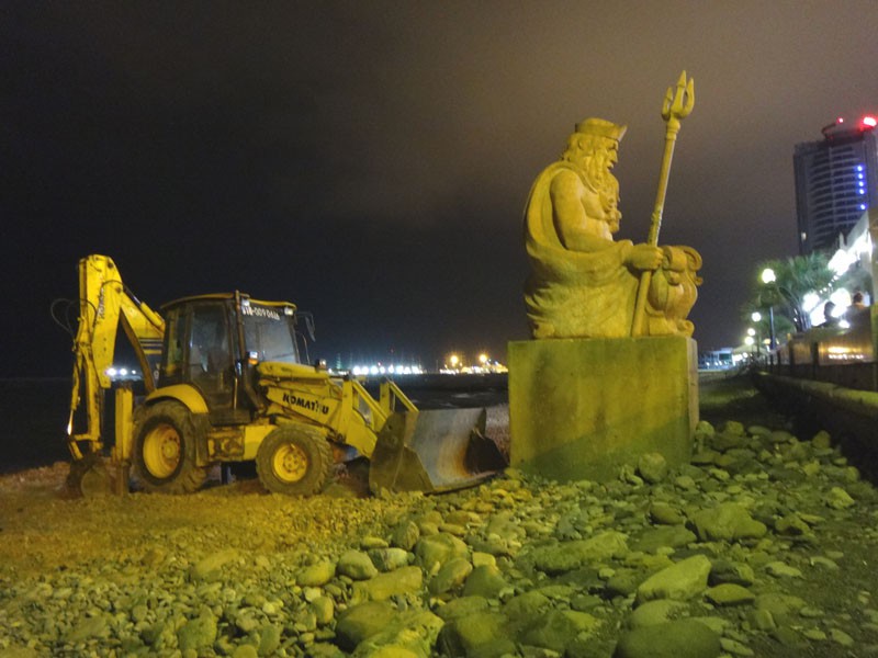 А если серьезно — скорее тракторист прикололся, на ночь так поставил аппарат. Там пляж делают.