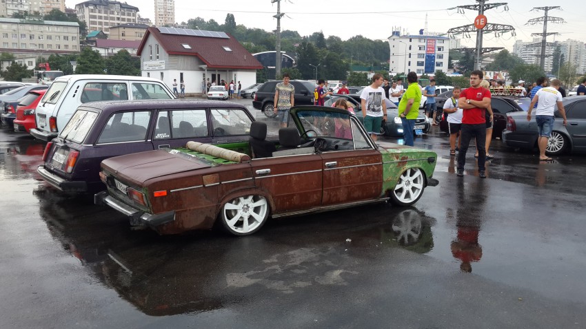 Не спорю, но это не та машина в которую стоит невозвратно вкладывать деньги. Ребята её сделали за 3-4 дня, что бы удивить и повеселить народ, что в принципе у них и получилось. Срезали крышу, врезали 18-е диски и вперед удивлять Сочинцев)
