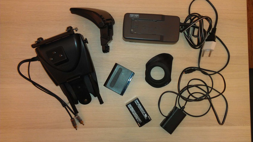 - Видеокамера Canon XL-1, 16 кратный зум объектив (5,5-88мм), стерео-микрофон, 2-е батареи BP-927, зарядное устройство CA-900, сетевой адаптер DC-900, кабель S-видео S-150, видеокабель STV-150, 10 кассет Mini-DV, плечевой упор с аудиоразъемами.