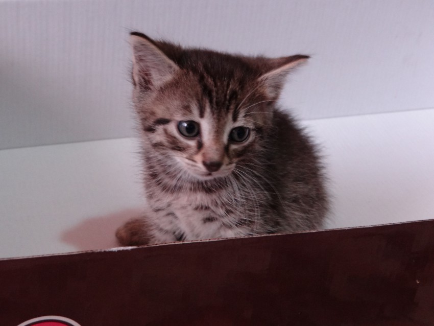 Моей соседке в начале мая под дверь подкинули пять котят. Котятки были еще маленькие и даже не ели самостоятельно. Сейчас котята подросли, кушают самостоятельно, в еде не прихотливы, к лотку приучены. От блох обработаны, от глистов будут обработаны в ближайшие дни. На вид им примерно полтора месяца.