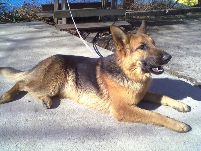 У меня проблема — нашла в Дагомысе овчарку. Не больше года ей. Команды особо не знает. Уже несколько дней бегала в районе Чайфабрики, искала хозяев. Сучка, с бирюзовым ошейником. Довольно чистая, блох почти нет, видно, что за ней ухаживали. Видно, что чистопородная.