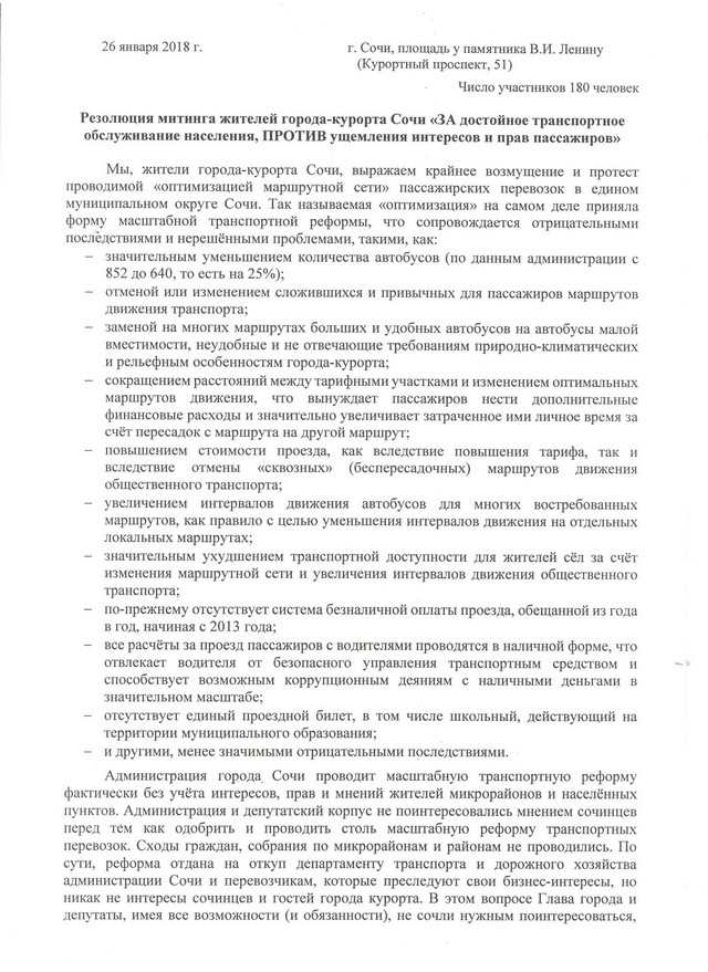 Жители Сочи вышли на митинг против сокращения маршрутов городского транспорта