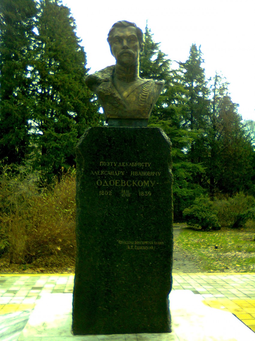 В современном курортном поселке Лазаревское, в небольшом тенистом сквере, вблизи берега моря, установлен памятник Александру Ивановичу Одоевскому с надписью «Из искры возгорится пламя» выдержкой из его знаменитого стихотворения ответа на послание А.С. Пушкина «Во глубине сибирских руд»…