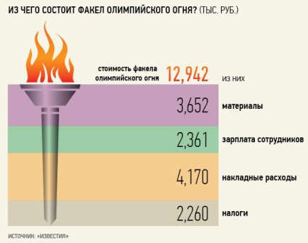 Ссылаясь на источник, близкий к руководству завода, «Известия» сообщили, что договор должен быть подписан на следующей неделе и что завод уже предоставил в оргкомитет «Сочи-2014» следующую расчетную стоимость факела: