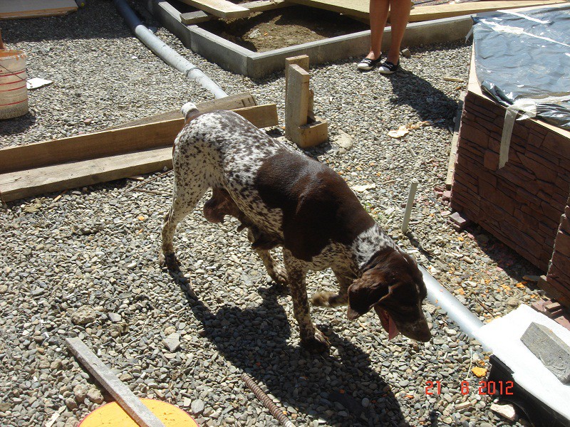 Приблудилась собачка к строящемуся дому. Очень умная, приветливая. Скоро работы закончатся, рабочие уйдут. Жалко. Породу не знаю, помогите определить, сука, были щенки. В паху-грыжа. Собака не старая, думаю лет 4-5. Зубы отличные, на вид- здоровая. Очень веселая, умеет улыбаться." />Подвижная. Может ее кто-то ищет или возьмет себе во двор.