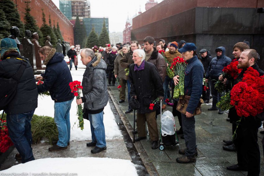 Либерастов бесит и возмущает то, что народ помнит Сталина. Сегодня в Москве образовалась большая очередь из тех, кто пришёл к могиле Сталина с букетами алых гвоздик. Один из непонимающих либерасов сделал об этом большой репортаж, похаивая пришедших людей.