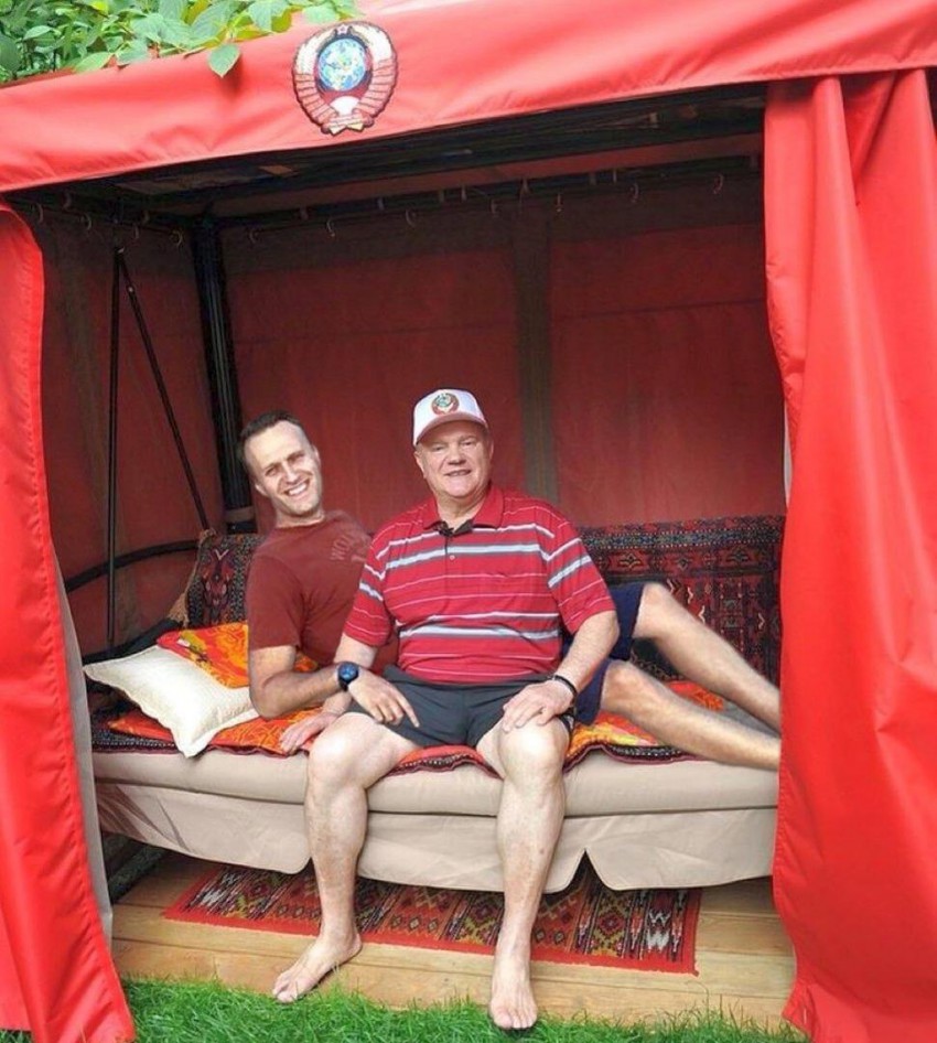 Ух ты, ряженых алкашей уже даже коммуняки с собой бухать не берут…