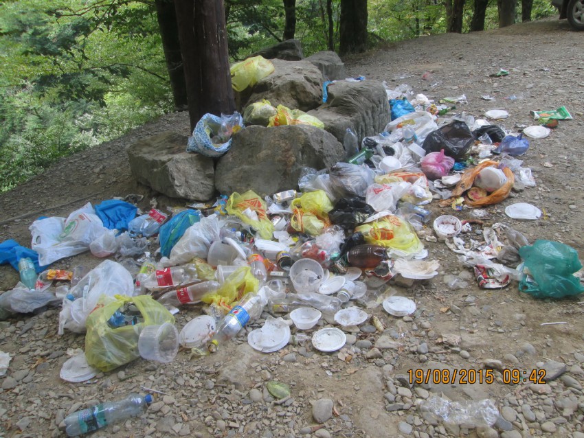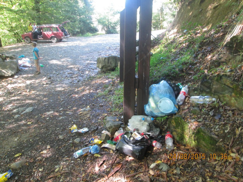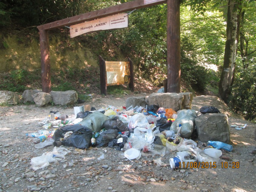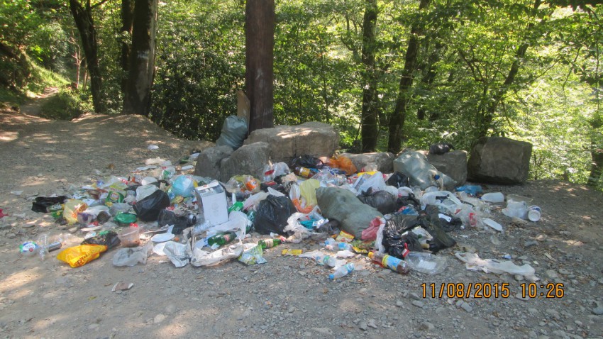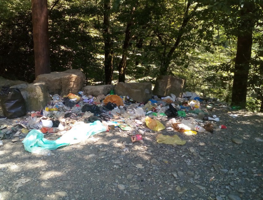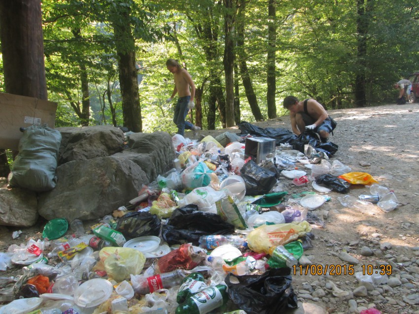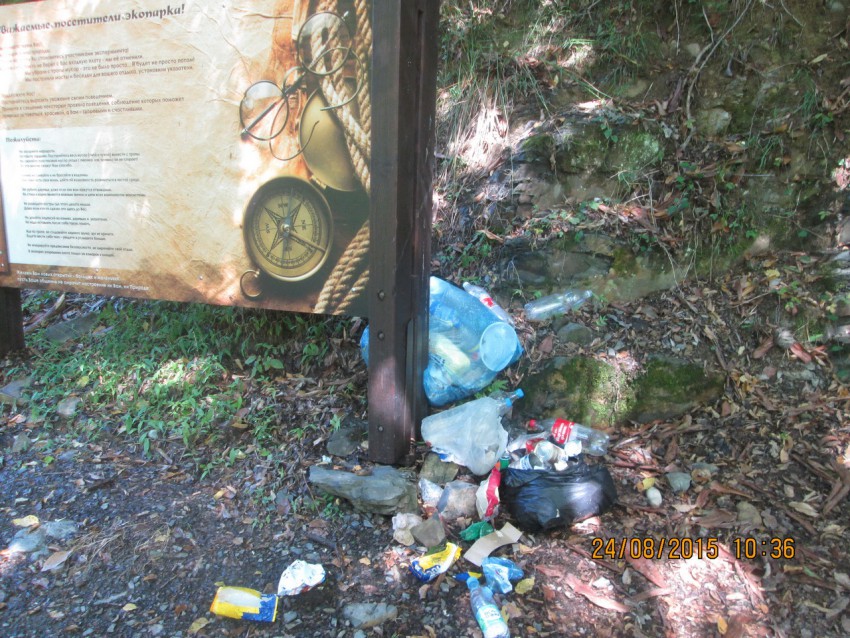 Несколько лет назад – одна из Сочинских компаний взялась за обустройство данного маршрута. Егеря и лесники установили беседки, отремонтировали мосты. Были установлены таблички по маршруту. На одной из них написано: — «Никто не берем с Вас входную плату – мы её отменили. Мы убрали с тропы мусор – это было не просто…». Это, действительно не просто. Не просто ходить и за каждым собирать пластик, стекло и прочее. Особенно если этот мусор оказывается в овраге. Приходилось брать альпинистское снаряжение, провешивать веревки и собирать, собирать…. Никто этого не видит, или не хочет видеть. Давайте представим на минутку, если мусор вообще не убирать – что будет? Наверное, никто из авторов комментариев не хочет сидеть на свалке? Многие пишут, что вывозят мусор с собой – я тоже вывожу. Но тогда от куда он появляется вновь и вновь? Контейнер около входной группы поставить не представляется возможным. Ни одна из организаций, которая занимается вывозом мусора – туда не проедет, дорога не позволяет. Да и не простоит он там долго, учитывая потребительское отношения большинства – он окажется где-нибудь в реке. На прошлой неделе – кто-то из автолюбителей менял там свечи, и тут же их оставил. Да, забыл сказать, что утилизацией мусора до того, как та самая компания взялась за обустройство, занималась одна бабушка, которая живет по-соседству.