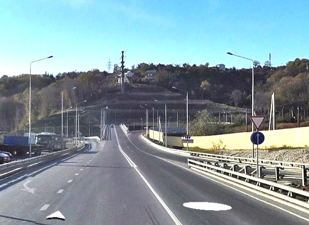 Я вижу две параллельные полосы, причём после знака разделённые даже сплошной. Зачем здесь знак 2.4? Разве в данном случае не следует руководствоваться правилами перестроения? Это участок дороги между Обходом Сочи и Транспортной. И это не единственное такое место где стоит знак 2.4, а перекрёстка за ним никакого нет…